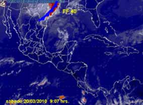 La afluencia de aire marítimo tropical hacia la vertiente oriental del país, ocasiona un evento de “Surada” que esta madrugada en la zona de Orizaba alcanzó rachas de 50 km/h, asimismo mantiene en la región cielo despejado a medio nublado. El frente frío No. 40 se aproxima al Sureste de Texas. Por su parte el sistema de alta presión y masa de aire frío que lo impulsa cubre el centro de los Estados Unidos.