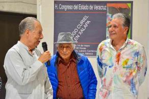 El listón inaugural fue sostenido por amigos allegados del expositor, todos conocidos personajes de la plástica veracruzana que, respondieron a la invitación de Hugo Curiel, para que lo acompañaran en esta exposición, la segunda en Xalapa, desde que radica en Playa del Carmen.