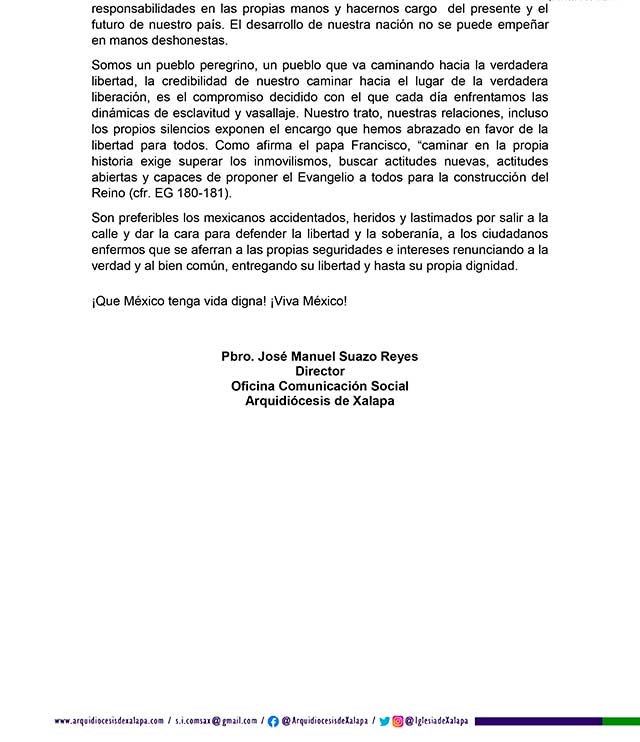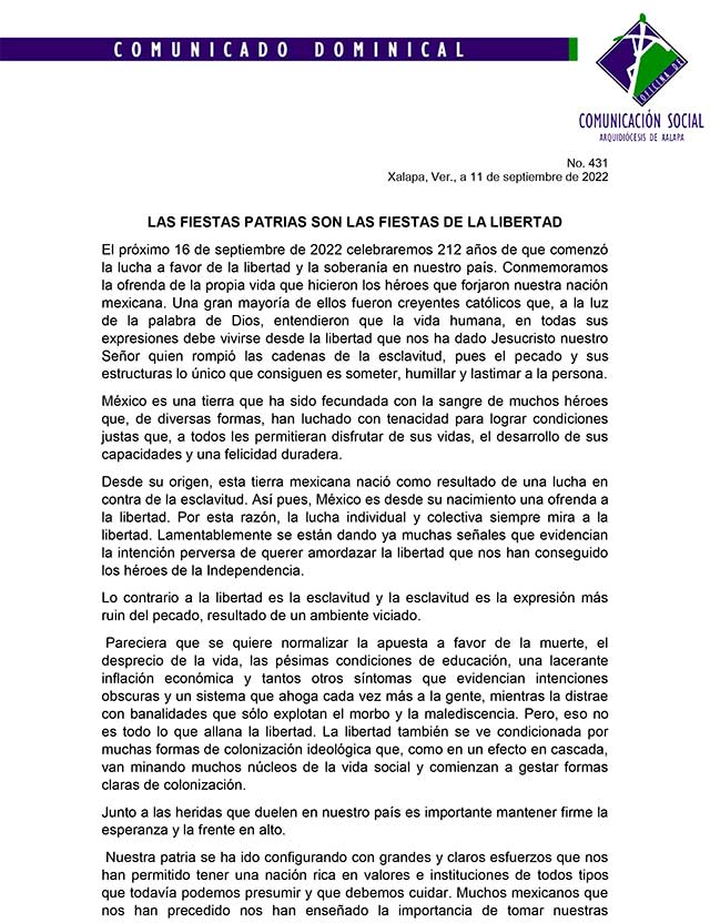 - Esto es preferible a estar "enfermos y sometidos": Arquidiócesis de Xalapa