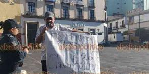 La mañana de este lunes el ciudadano Ignacio Guadarrama Islas se presentó en la Plaza Lerdo, a un costado de la Catedral Metropolitana, para exigir el pago de un adeudo que según indicó, la Secretaría de Educación de Veracruz (SEV) le mantiene desde hace 4 años por un monto de 10 mil 600 pesos.
