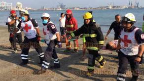 Aunque no había fuego, al punto llegaron elementos de bomberos de la ciudad de Veracruz quienes sólo observaban la maniobra.