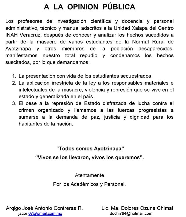 INAH Xalapa se suman al movimiento “Todos somos Ayotzinapa”