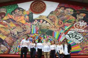 Las instalaciones del CECATI 33 de Río Blanco albergan desde este día el mural "Educación y Trabajo para la Grandeza de México", del artista Daniel Arcos Mota.