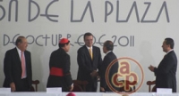 Entre mutuos halagos, el presidente Felipe Calderón, el jefe de gobierno del Distrito Federal, Marcelo Ebrard y el cardenal Norberto Rivera, inauguraron esta tarde la Plaza Mariana, en el primer cuadro de la Basílica de Guadalupe.