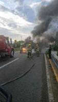 A cinco kilómetros de la capital del Estado, esta mañana fueron incendiados por lo menos cinco unidades entre camionetas y coches, todas sin placas de circulación, lo que ocasionó el cierre de esta vía principal de comunicación que funge como acceso a la ciudad, hasta que el fuego fue controlado por los Bomberos del Estado.