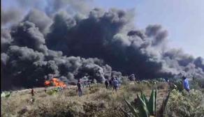 Hasta el cierre de la nota informativa, las autoridades trabajaban en sofocar el incendio y lavar la carpeta de rodamiento.