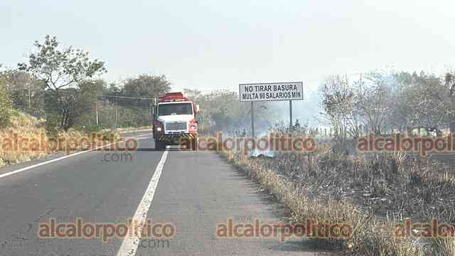 La Antigua, Ver., 9 de marzo de 2025.- La tarde de este domingo fue cerrada la circulación en la carretera Cardel-Salmoral debido al incendio de pastizales.