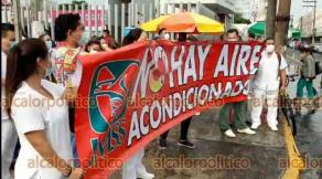 Personal médico de la Clínica 14 del Instituto Mexicano del Seguro Social (IMSS) en Veracruz se manifestó en demanda de la reparación del sistema de aire acondicionado que desde el inicio de la pandemia están sin operar.