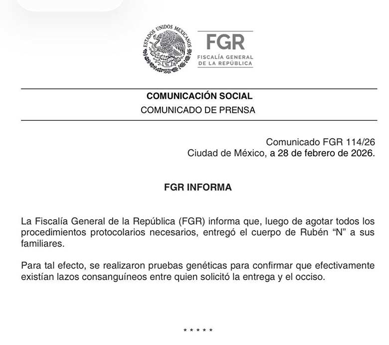 Verificó los lazos sanguíneos con quienes dijeron ser familiares; el breve comunicado lo pone como Rubén “N”