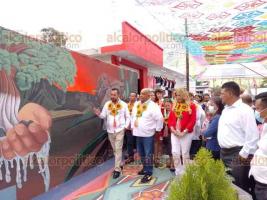 El presidente municipal anfitrión, Luis Alfredo Cruz López, cortó el listón inaugural con las autoridades estatales e invitados y a continuación realizó un recorrido con ellos para que apreciarán el tapete aéreo tejido por las mujeres del municipio y los murales pintados por los artistas veracruzanos Vicente Cabrera y Fize.