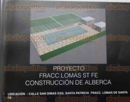 Durante entrevista, adelantó que se realizará el proyecto de una alberca semiolímpica en el área común del fraccionamiento HOMEX-Santa Fe, ubicado en la calle San Dimas esquina Santa Patricia de esta ciudad capital.
