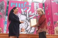 En ceremonia realizada en el foro al aire libre de la Casa del Lago, recibieron la medalla de manos de la rectora Sara Ladrón de Guevara González, en compañía de autoridades universitarias.