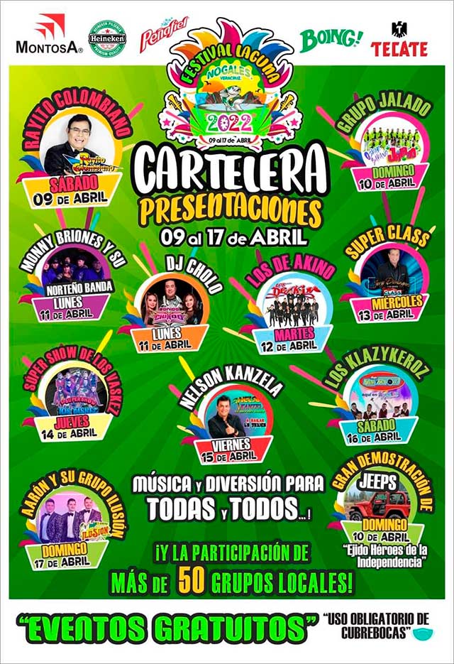 En este año, el Festival de la Laguna se lleva a cabo del 9 al 17 de abril y se espera además la participación de Aarón y su Grupo Ilusión, Nelson Kanzela, Súper Class, Los Klasykeroz, Los de Akino y Súper Show de los Vásquez, entre otros.