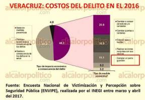 De igual forma, la ENVIPE permitió estimar que en el año 2016, el costo total a consecuencia de la inseguridad y el delito en hogares de Veracruz, representó un monto de 8 mil 569.5 millones de pesos.