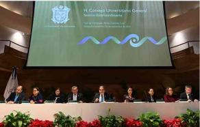 El Consejo Universitario General (CUG) de la Universidad Veracruzana (UV) llamó a fortalecer la exigencia de que la institución reciba el presupuesto que por mandato constitucional le corresponde, durante la sesión extraordinaria realizada este lunes en la Sala Anexa de Tlaqná, Centro Cultural, presidida por el rector Martín Aguilar Sánchez.