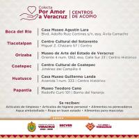 Se dio a conocer en redes sociales que personas han optado por colocar estas recolecciones pero sin tener el mecanismo de transporte ni asegurar su final destino; en ese sentido, manera oficial, la Secretaría de cultura del Estado de Veracruz, activó los siguientes recintos como centro de ayuda.