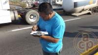 La unidad retornaba luego de descargar en la gasera Mabarak los 47 mil 849 litros de combustible, destrabándose el remolque tipo cisterna, generando el pánico entre conductores que iban pasando.