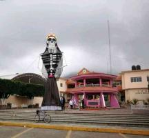 Misantla se adjudicó el primer lugar con una monumental Catrina de 28 metros, confeccionada con estructura metálica y decorados en flores y estrellas.