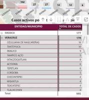 De acuerdo con el reporte oficial, Veracruz mantiene 176 casos activos; Ixtaczoquitlán, 8; Córdoba, 5; Coscomatepec, 2; Alpatláhuac, Fortín, Ixhuatlancillo, Orizaba, San Andrés Tenejapan y Tezonapa, uno cada municipio.