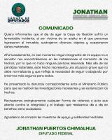 El diputado federal por el distrito de Zongolica, Jhonatan Puertos Chimalhua, informó que interpuso una denuncia formal ante el Ministerio Público tras el asalto registrado en su casa de gestión, ubicada en el municipio de Rafael Delgado, hecho que dejó daños materiales y el robo de diversos objetos.