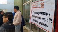 Desde las 6:00 horas, jubilados y pensionados de la Sección 56 del SNTE mantienen tomadas las instalaciones del Instituto de Pensiones del Estado (IPE) en protesta porque no se les han depositado el pago correspondiente a su pensión a unos 500 extrabajadores en toda la entidad.