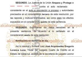 El auto de vinculación a proceso dictado en contra de María Aurora Pérez, extesorera del Ayuntamiento de Jamapa, dentro del proceso penal que se sigue en su contra por los delitos de abuso de autoridad, incumplimiento de un deber legal y peculado, violó sus derechos humanos, por lo que deberá ser dejado sin efectos y dictarse una nueva resolución, así lo determinó un Juez de Amparo del Poder Judicial de la Federación.
