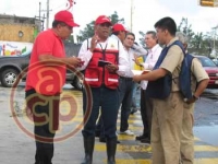 El gobernador del estado, Fidel Herrera Beltrán, recorrió algunos de los puntos críticos afectados en la zona conurbada antes de trasladarse a Ursulo Galván, Chachalacas y Cardel donde hizo impacto el huracán. Aquí en la avenida Rafael Cuervo, girando instrucciones.