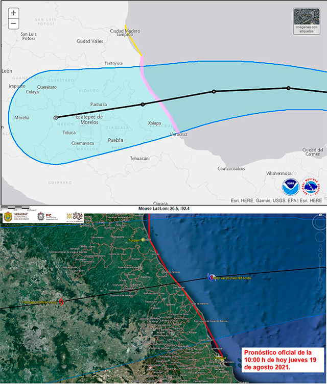 La Secretaría de Protección Civil definió una zona de vigilancia por efectos del huracán desde Veracruz hasta Cabo Rojo. Como la trayectoria de Gracese ha movido más al sur, los tiempos de impacto se acortan, ahora podría llegar a Veracruz la noche del viernes.