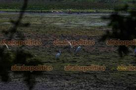 El cuerpo de agua apenas y mantiene un “espejo” del vital líquido, donde se observa a algunas aves que llegan ahí por migración. Otra gran parte del área está completamente seca, tanto que hasta se ven caballos pastando dentro de lo que antes fue un lagunar.