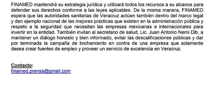- Quieren por parte de la Secretaría de Salud que se conduzca en el marco de la ley y brinde seguridad a inversionistas