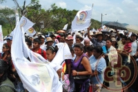 Más de 800 personas caminaron con banderas en mano y gritando consignas a favor de su lucha pues también solicitan apoyos a proyectos productivos.