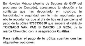 Mi intención es recuperar mi dinero pues no hay ninguna póliza reflejada y ya se perdió un mes de vigencia, además del peligro que implica circular así. Qué pena que una agencia de renombre se preste al fraude a clientes pues no sabemos a cuántos le han hecho lo mismo.