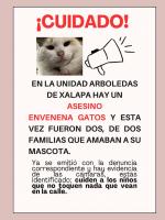 En la Unidad de Arboledas de Xalapa, la noche del 18 de febrero se presentaron 3 muertes de gatos por envenenamiento en menos de media hora, gatos que tenían familias, de casa. Desde hace más de 5 años se presenta esta problemática en toda la unidad, sin que las autoridades hagan caso. Se contactó con la Brigada Animal e hicieron caso omiso, manifestando la oficial 0683 que hasta que no esté el animal convulsionando no pueden auxiliar.