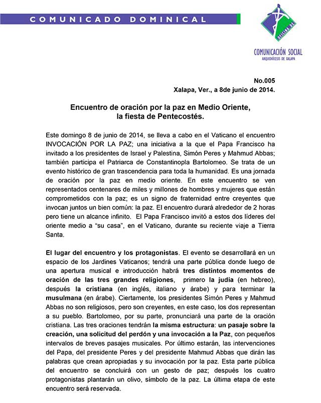 - La paz no es sólo reto de los gobernantes sino imperativo de todos los seres humanos: Arzobispado de Xalapa