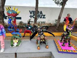 En el panteón municipal de Veracruz se montó una exhibición de alebrijes que fueron elaborados por estudiantes de 15 escuelas primarias del municipio, como parte de un concurso en el que echaron a volar la creatividad para llevar a cabo las figuras de animales fantásticos y convocado por la Dirección de Panteones.