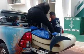 En las playas de Chachalacas encalló un delfín, el cual fue auxiliado por habitantes de la zona y personal del Centro Tortuguero “Playita de Chachalacas”.