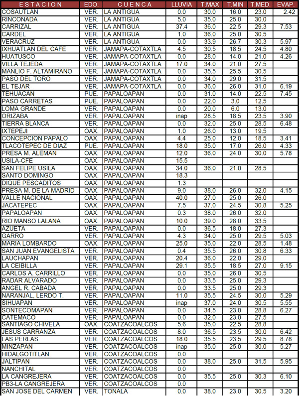 El clima real de ayer martesalcalorpolitico.com