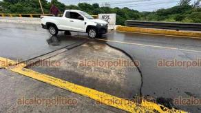 En el puente de la avenida Víctor Sánchez Tapia que comunica a Río Medio 3 con el fraccionamiento Torrentes, en la zona norte de la ciudad de Veracruz, se desprendió parte de la carpeta asfáltica debido a las lluvias.