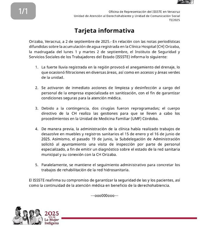Lluvias evidencian fallas; ISSSTE Orizaba refuerza su infraestructura sanitaria