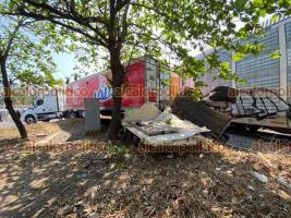 En la carretera federal Veracruz-Xalapa, muy cerca de las vías del tren que pasan junto a la factoría de la empresa Tamsa y la zona de la ciudad industrial Bruno Pagliai, un tráiler de doble remolque con logos de la empresa Lala fue colisionado por una locomotora.