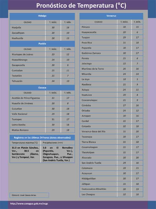Un evento de “Surada” podría registrarse durante la madrugada del jueves o viernes, en las zonas de Orizaba, Los Tuxtlas y parte baja del río Coatzacoalcos. Un nuevo frente frío es probable nos afecte hacia el mediodía del próximo sábado