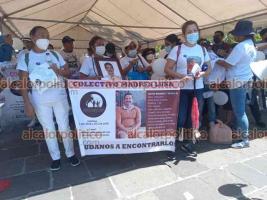 Durante el trayecto gritaron consignas, portaron fotografías de sus familiares desaparecidos y playeras también con los datos de cada víctima de desaparición.