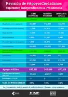 Armando Ríos Piter sólo logró 242 mil 642 firmas, mismas que fueron recabadas en tres entidades; mientras que Jaime Rodríguez obtuvo 835 mil 511 apoyos válidos en 17 estados del país. Lo grave del tema, es que el INE detectó casi un millón de firmas ciudadanas ilegales.