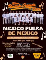 La gira artística será del 17 al 26 de septiembre de este año, y para todos los compatriotas que viven cerca de Los Ángeles podrán asistir el día 20 al evento “México fuera de México”, donde se invita a disfrutar de una comida-baile a la 13:00 horas en Legacy Commons 930 E. avenue Q-9 Palmdale, CA 93550. Finalizó diciendo que la Marimba Orquesta Hermanos Godoy ha sido una institución musical que se ha preocupado por preparar a jóvenes talentos e incursionarlos en el ámbito musical, teniendo como objetivo los viajes internacionales. Es de mencionar que Estados Unidos sería el país número 10 en visitar, luego de giras por Cuba, Belice, Canadá, Alemania, Sudáfrica, Bostwana, Turquía, Rusia y Bielorrusia.
