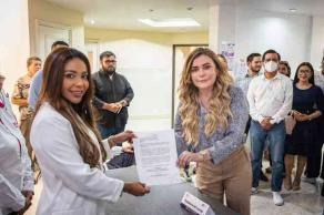 Acompañada de su familia, planilla, militantes y simpatizantes, se presentó ante el Consejo Municipal del Organismo Público Local Electoral del Estado de Veracruz (OPLE), para oficializar su candidatura.