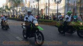 Tras rendir los honores al lábaro patrio, las autoridades municipales iniciaron la parada cívica, encabezada por elementos de Tránsito del Estado y Mando Único, seguidos del alcalde Tomás Ríos Bernal, el diputado Federal Marco Antonio Aguilar Yunes, el diputado local Hugo Fernández Bernal.