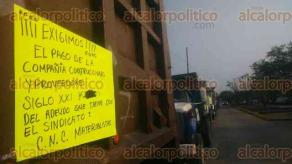 Por adeudo de 600 mil pesos, desde el año pasado, trabajadores del Sindicato de Materialistas de la Confederación Nacional Campesina realizan desde esta mañana un plantón frente al Complejo Petroquímico Escolín, en la colonia División de Oriente, aplicando como medida de presión el bloqueo del bulevar González Ortega de forma esporádica para que la empresa