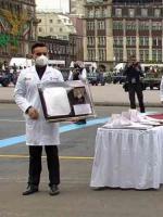 La presea al mérito profesional se le entregó a médicos y personal de enfermería propuestos por los mismos pacientes que fueron atendidos en los hospitales COVID-19, tras lograr recuperar su salud.