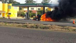 Tras el impacto, el automóvil fue proyectado hacia una de las bombas despachadora de gasolina, iniciándose el fuego, logrando alejarse ambos conductores, además de algunos automóviles y personas que se encontraban en el lugar.