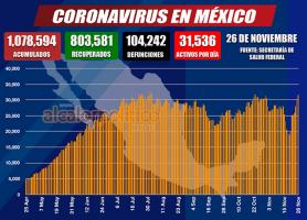 Con estas cifras México es el undécimo país con más casos acumulados y el cuarto con más muertes absolutas, de acuerdo con la Universidad Johns Hopkins.